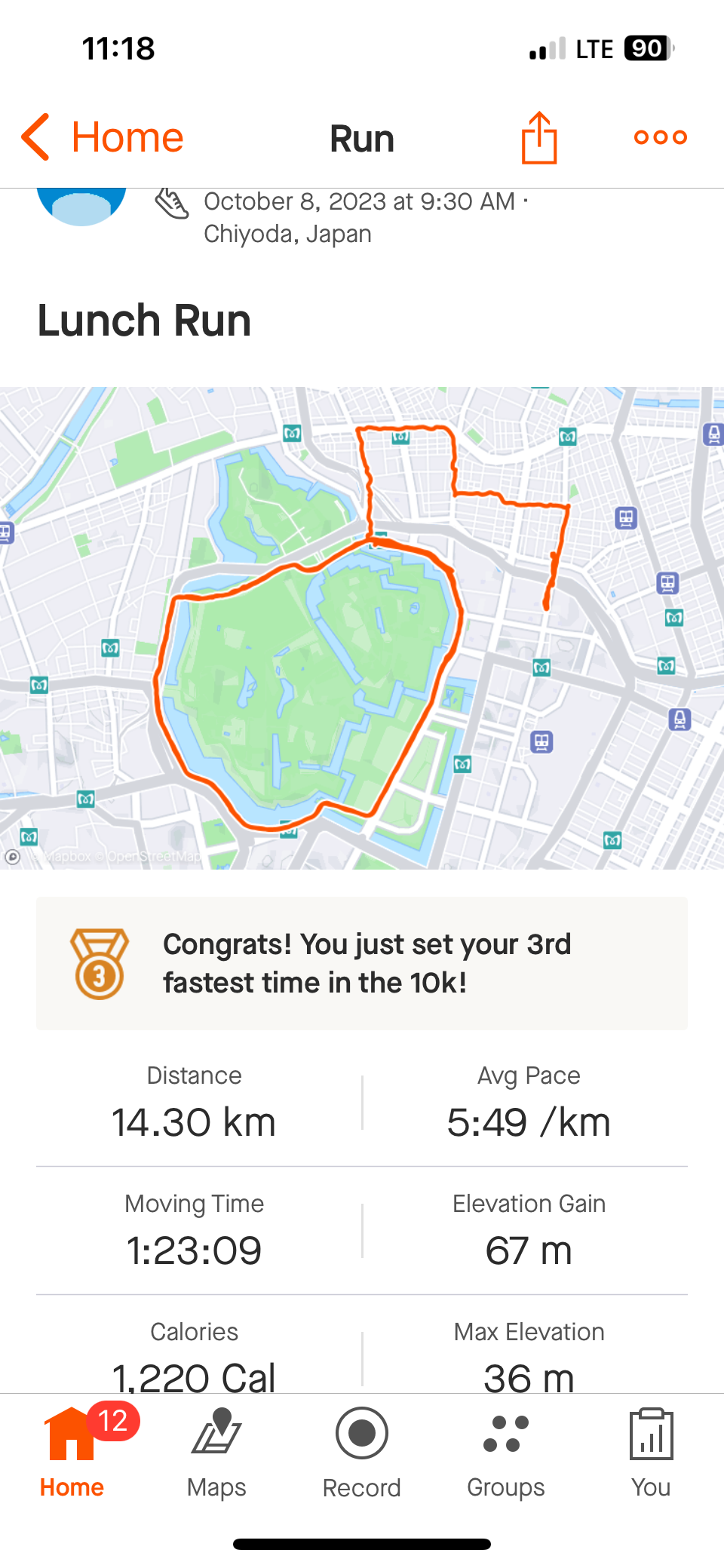 도쿄 황궁 코스는 한 바퀴에 5km다. 난 두 바퀴 뛰었다. 러닝 성지답게 달리는 사람이 엄청 많았다. 날씨도 달리기에 딱 좋고 황궁 해자도 멋지고 빌딩숲도 구경하며 뛰니 전혀 힘들지 않았다. 황궁런 할까말까 고민했었는데 뛰길 정말 잘 했다. 도쿄 여행 올 러너라면 황궁런 무조건 추천. 러닝 스테이션도 있어서 맨 몸으로 와도 뛸 수 있다!