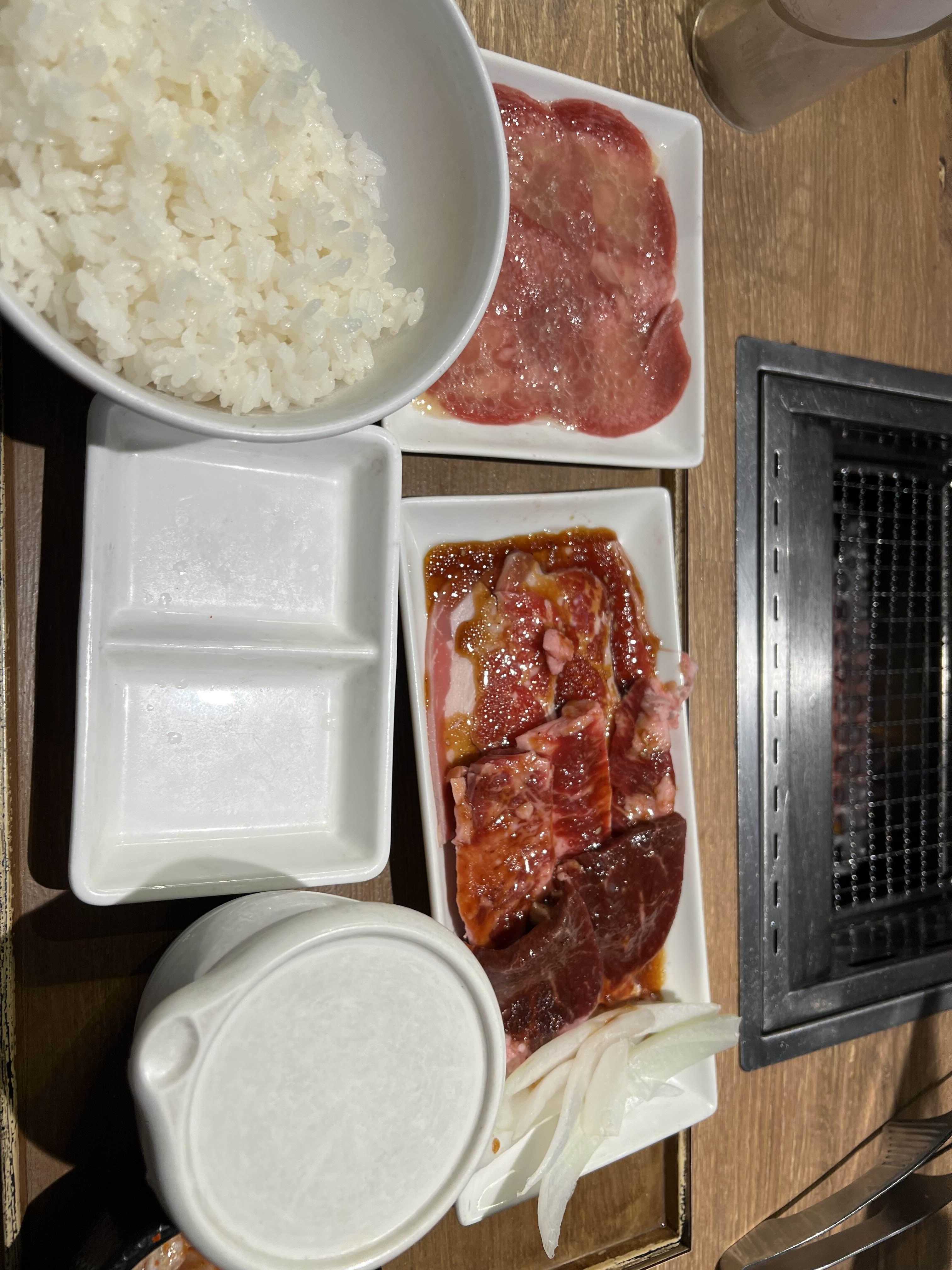 야키니쿠 라이크란 체인점에서 고기를 구워먹었다. 고기 200g 세트가 1700엔대로 가성비가 뛰어니고 1인용 불판이 있어서 부담없이 혼고기가 가능한게 너무 좋다. 고기 퀄리티도 의외로 나쁘지 않았고 반찬에 김치가 있었는데 생각보다 먹을만 해서 놀랐다.