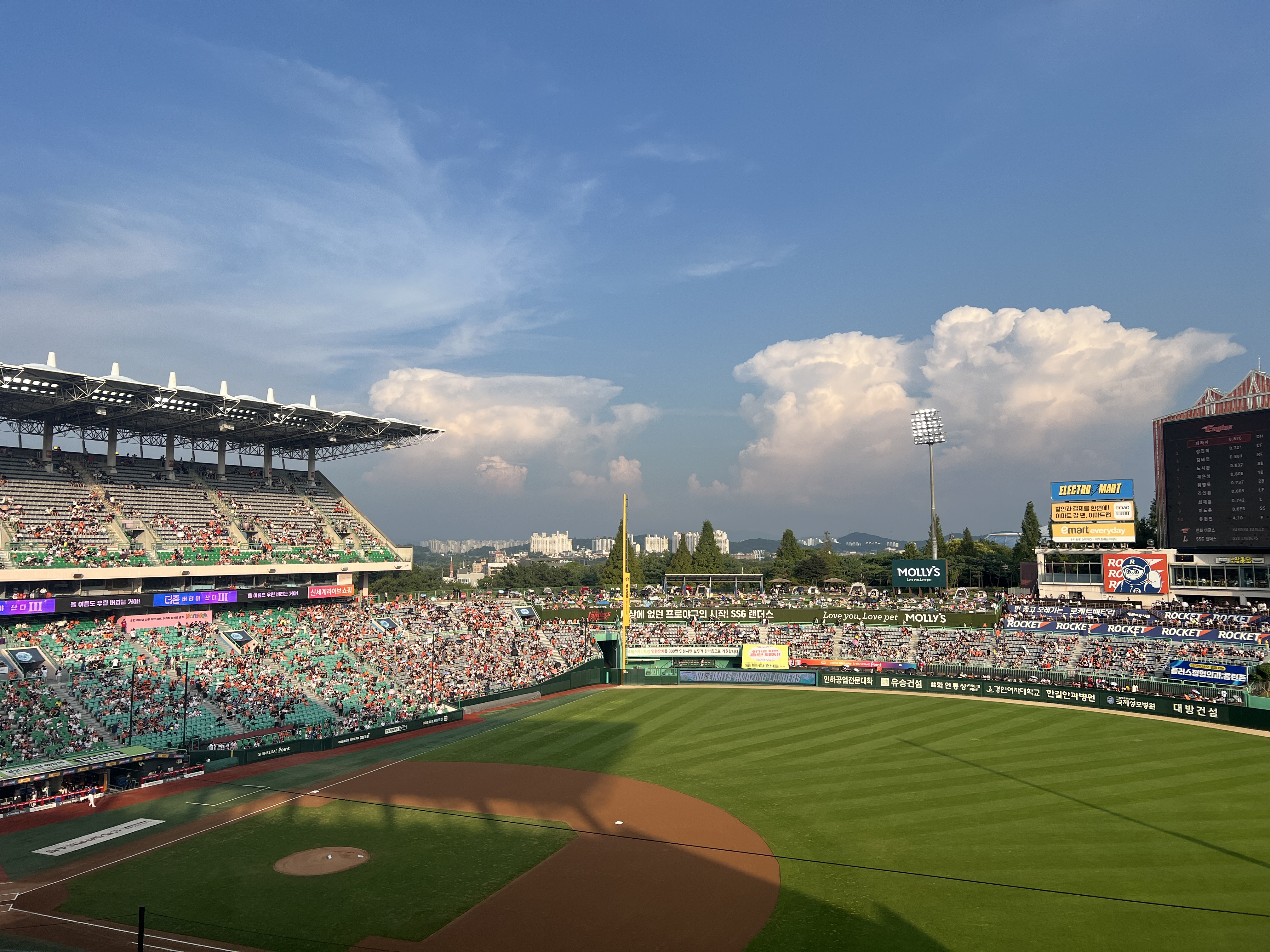 문학 야구장도 이제 연차가 꽤 쌓였는데 생각보다 시설이 좋고 먹을거도 많아서 놀랐다. 크림새우랑 닭강정 샀는데 꽤 먹을만했음. 좋은 구장에서 야구를 보니 내년 오픈하는 대전 신 구장이 더욱 기대됐다.