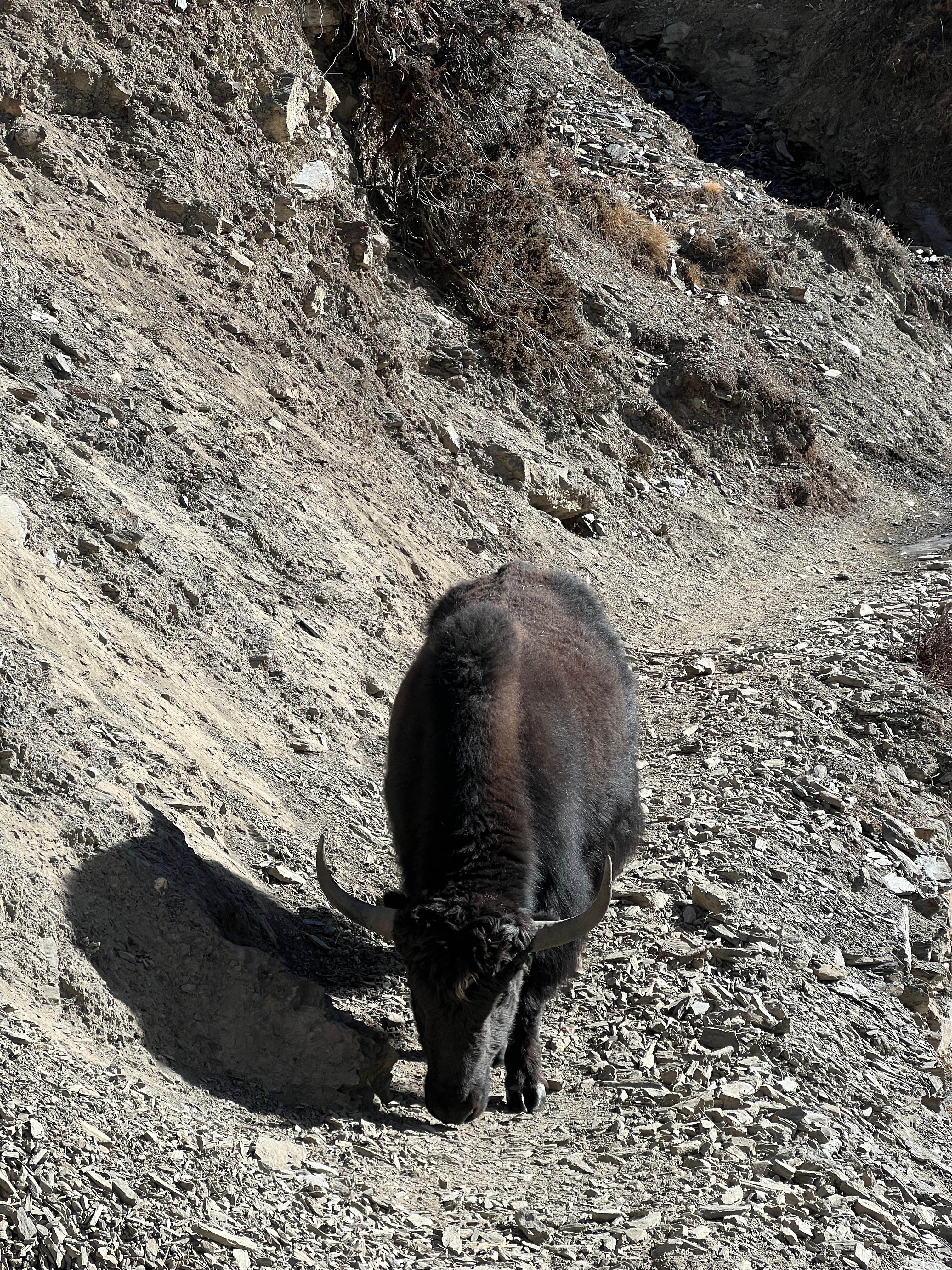 이 구간에서는 야크를 자주 볼 수 있었다. 야크는 히말라야 고산 지대에서 사람들과 함께 살아온 대표적인 가축으로, 운송·식량·연료·의복까지 고산 생활 전반을 책임진다. 소처럼 생겼지만 크기는 말과 비슷해 의외로 귀엽고, 길에서 마주치면 사람이 비켜줄 만큼 성격도 순하다.