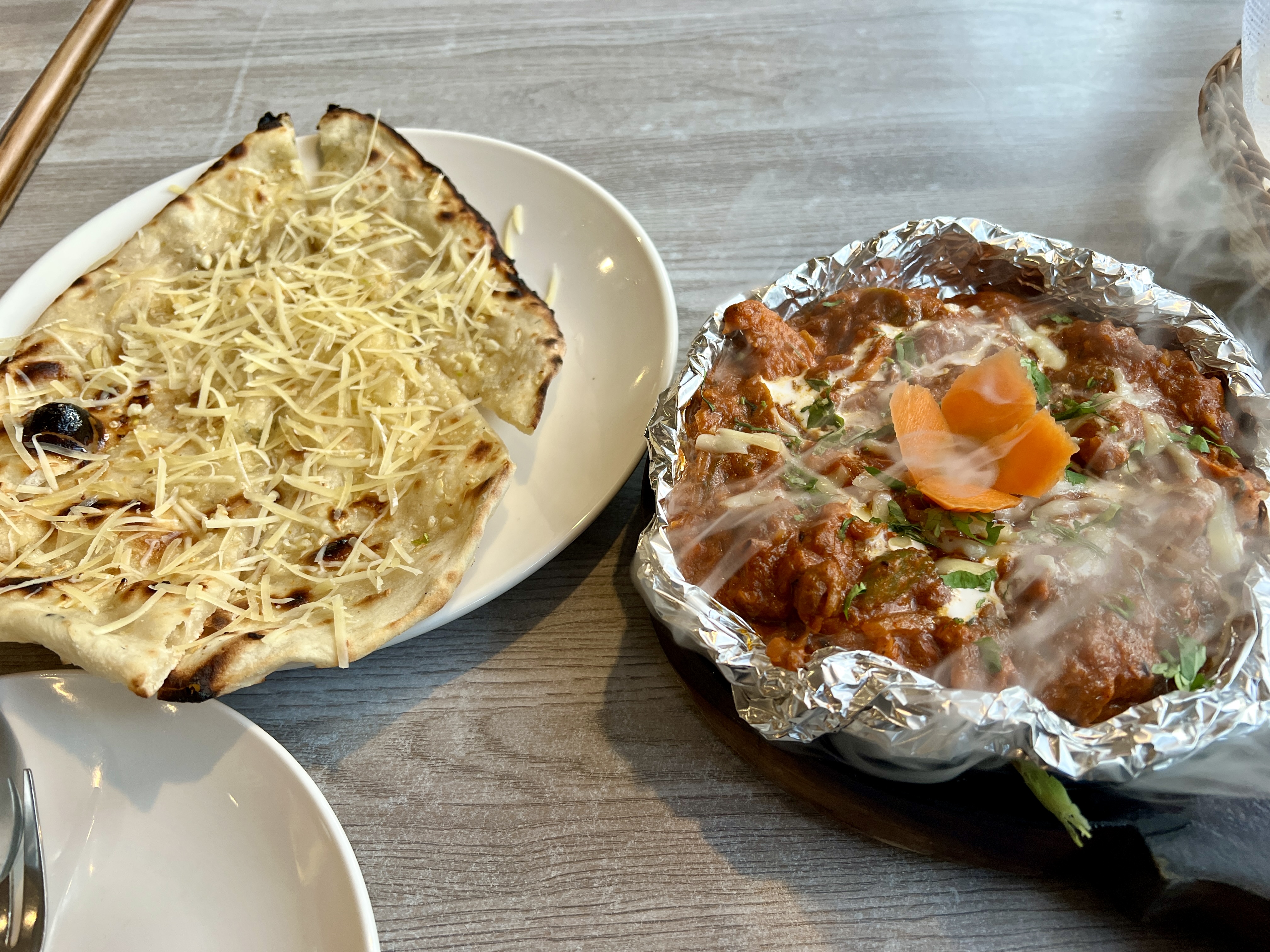 치킨 앙가라는 숯불 향이 나는 치킨 커리로, 불맛이 살아 있어 꽤 맛있었다.