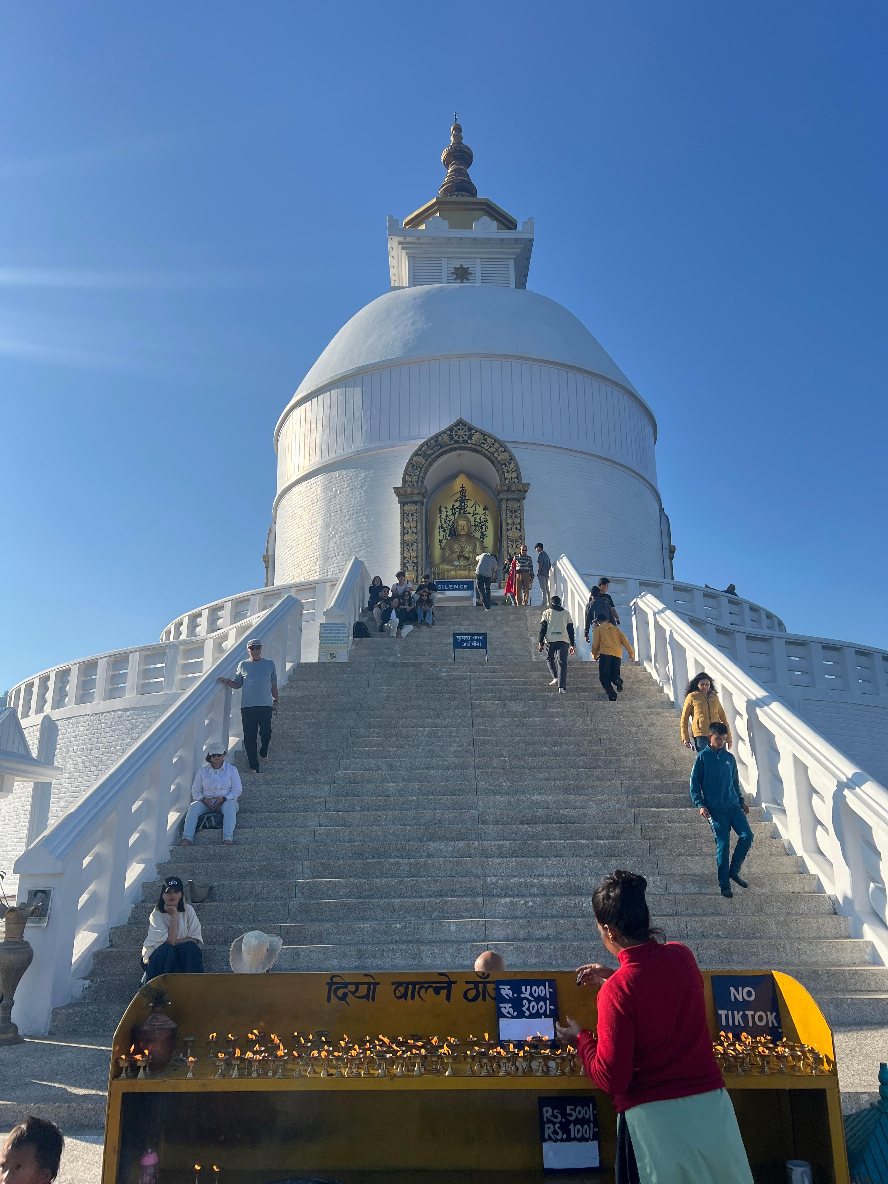 월드피스 파고다는 일본이 지어준 불교 건축물이다. 파고다 자체는 사실 크게 볼 건 없고, 여기서 내려다보는 폐와호수와 포카라 시내 전경이 훨씬 좋다. 걸어 올라올 땐 나 혼자였는데, 막상 파고다에는 사람이 꽤 많았다. 다들 차를 타고 온 모양이다.