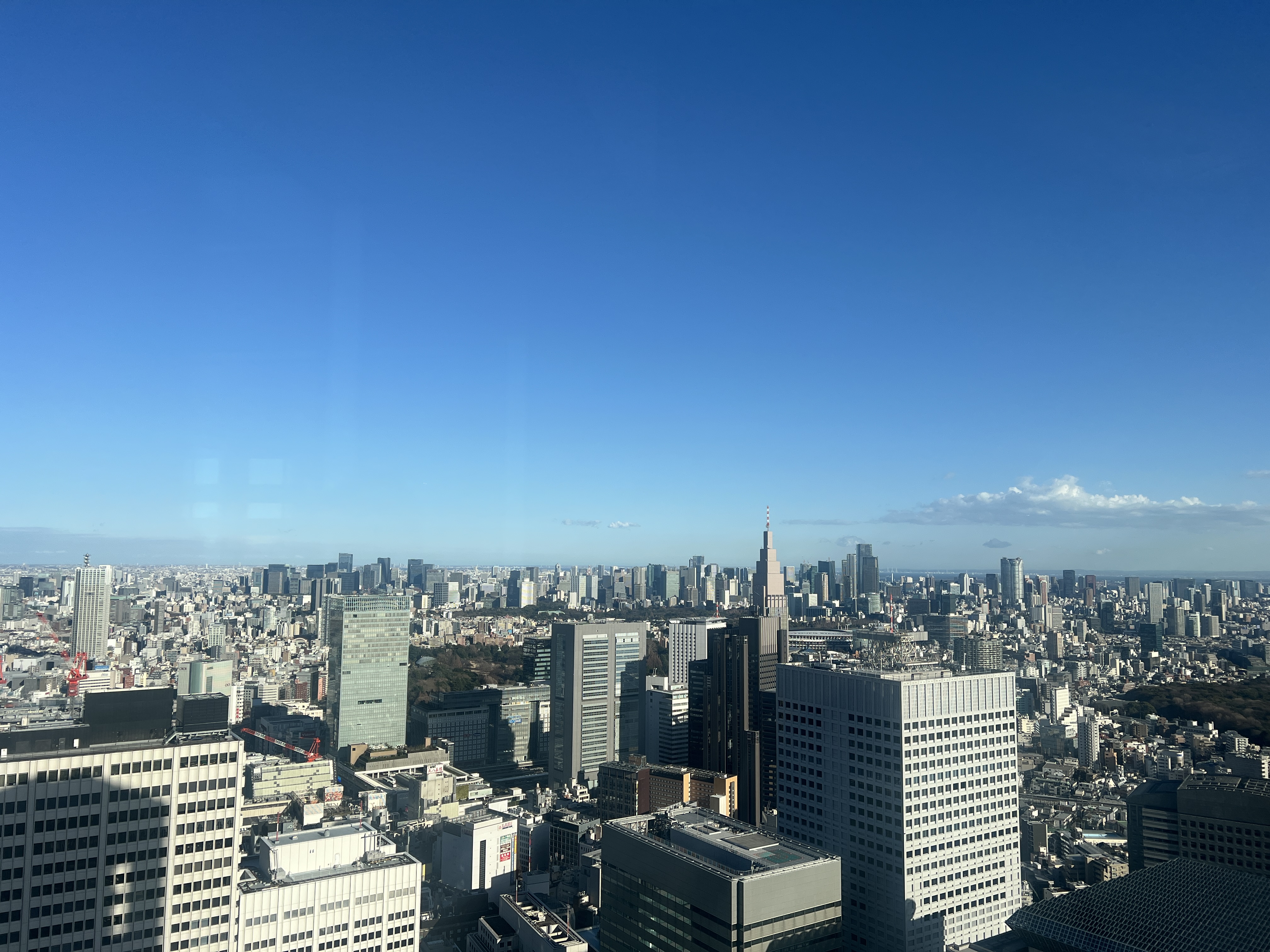 도쿄도청사는 며칠 전 마라톤 출발 장소였다. 그때는 도로 위에 서 있었는데, 지금은 그 장면을 내려다보게 되니 묘한 기분이 들었다. 건물 안에 들어가면 전망대 전용 엘리베이터가 따로 있다. 간단한 짐 검사를 하고 바로 탈 수 있었다.